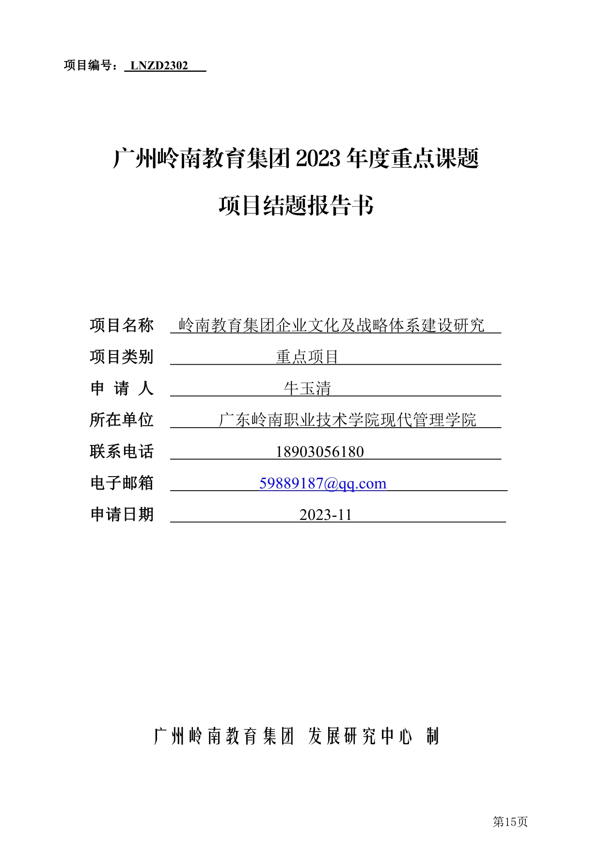 2.岭南教育集团企业文化及战略体系建设研究+牛玉清 - 立项协议