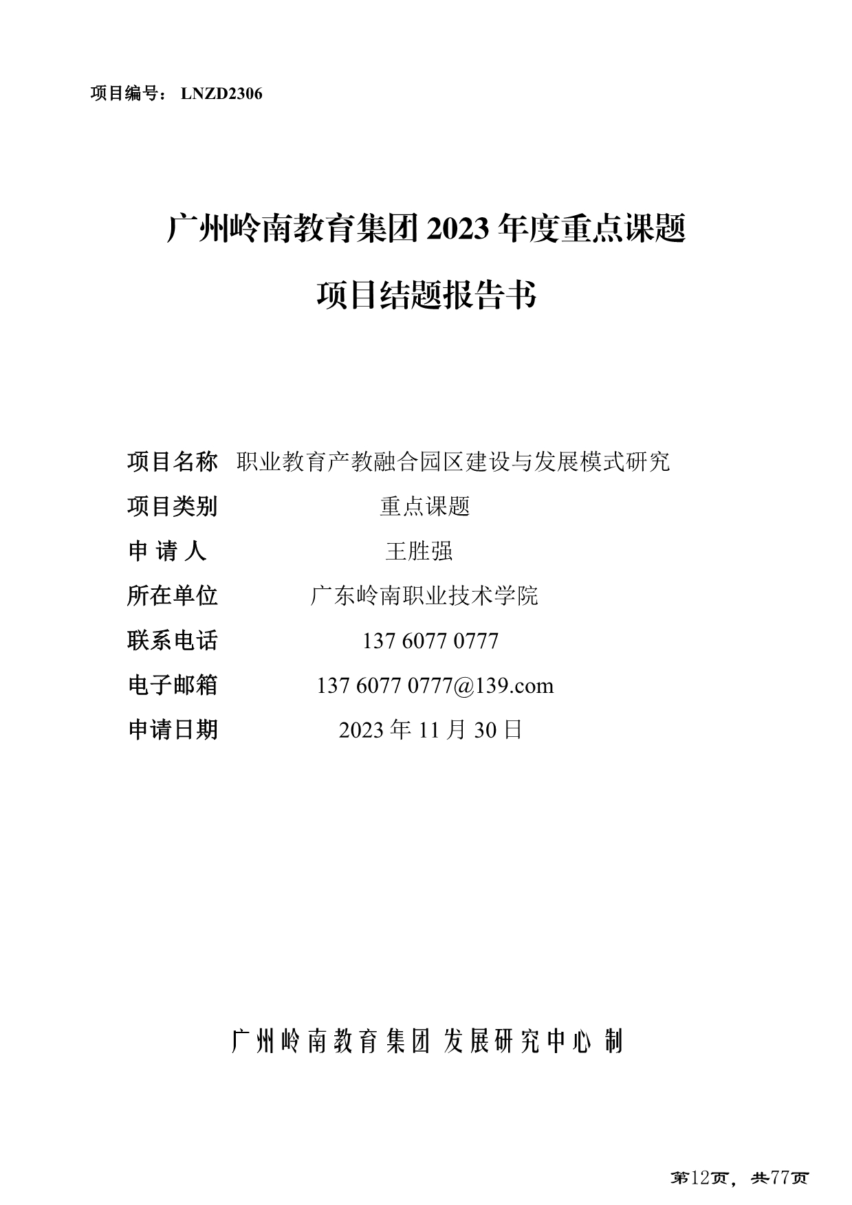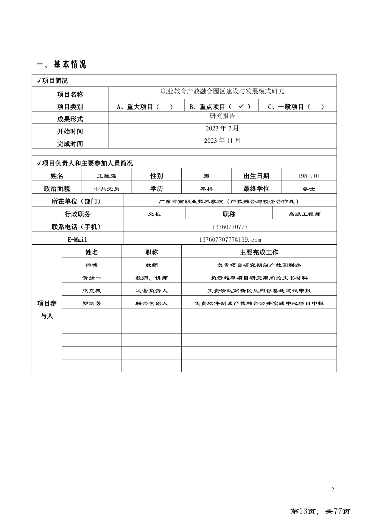 2.职业教育产教融合园区建设与发展模式研究+王胜强 - 立项协议
