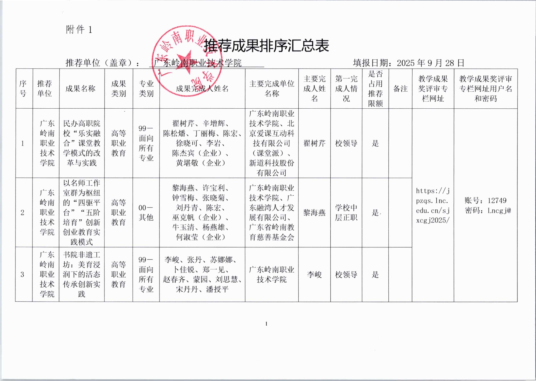 推荐成果排序汇总表