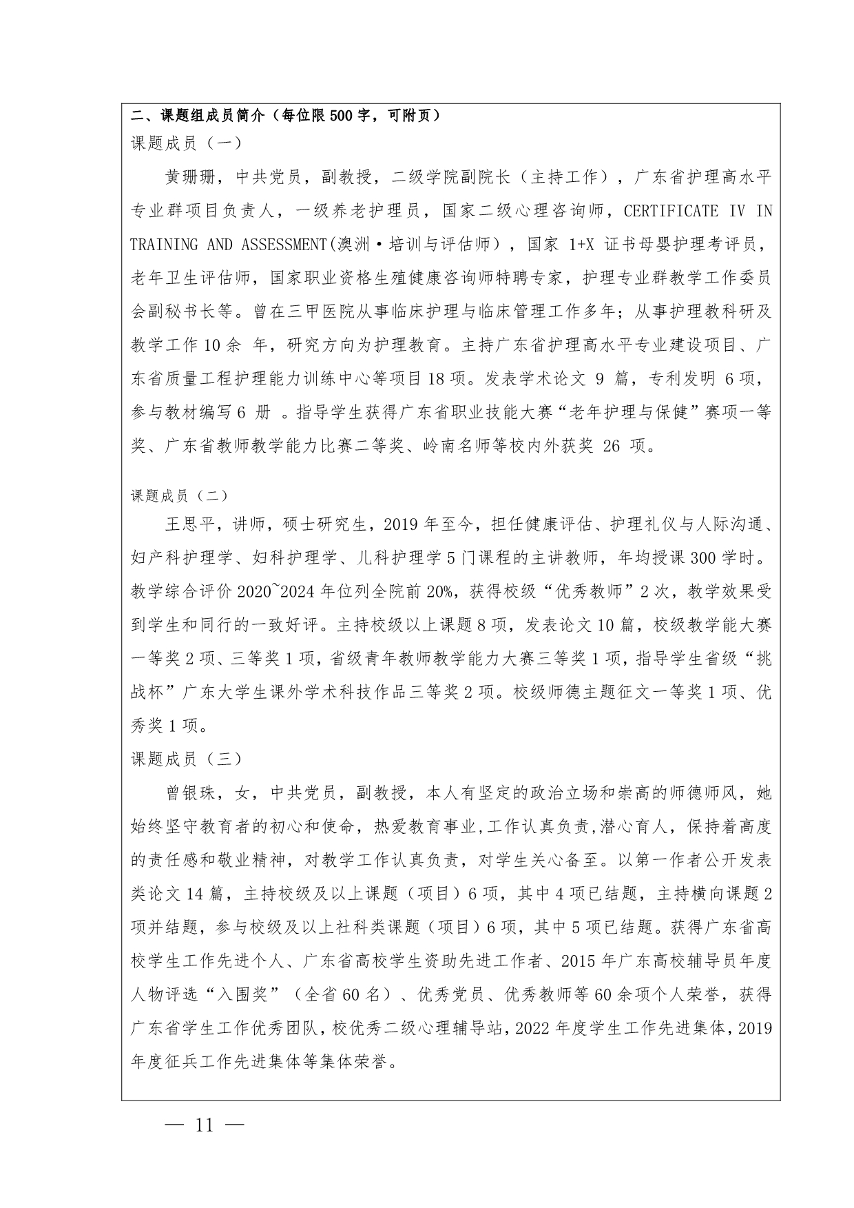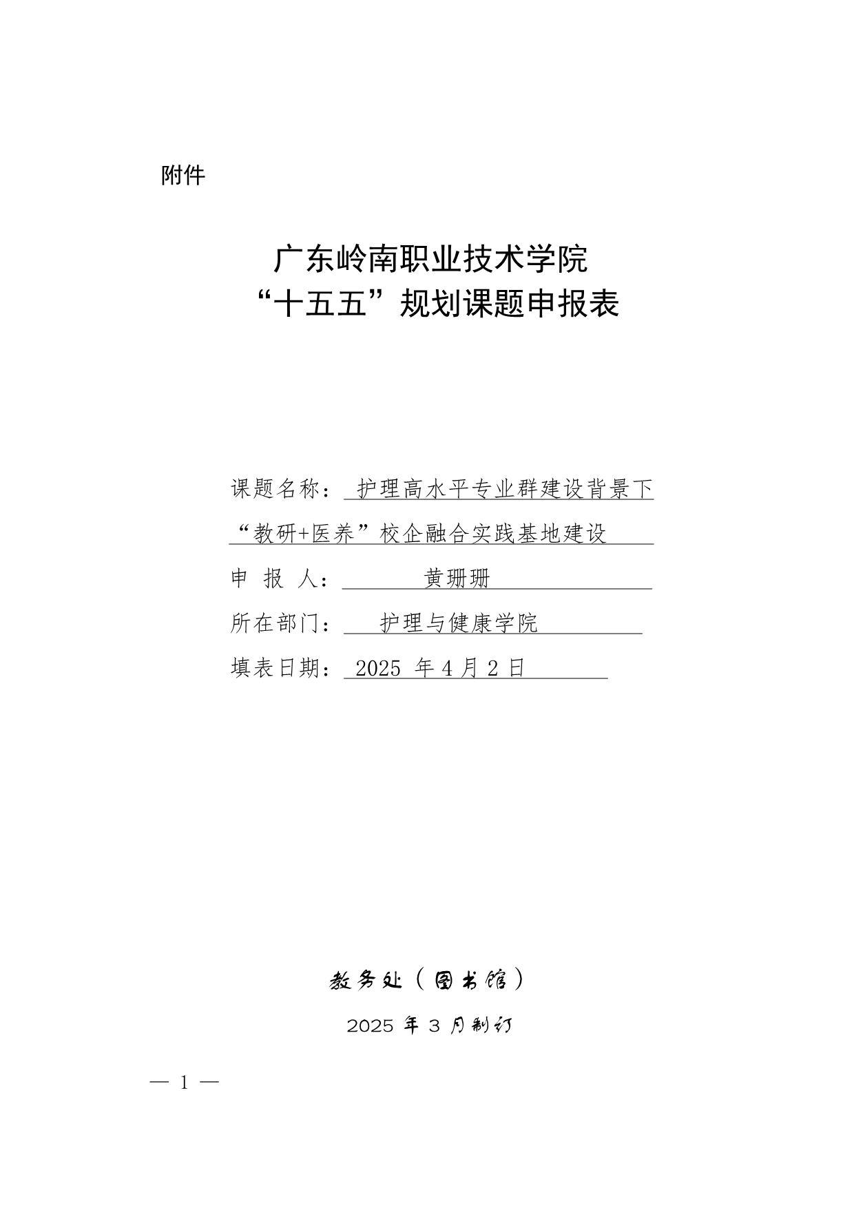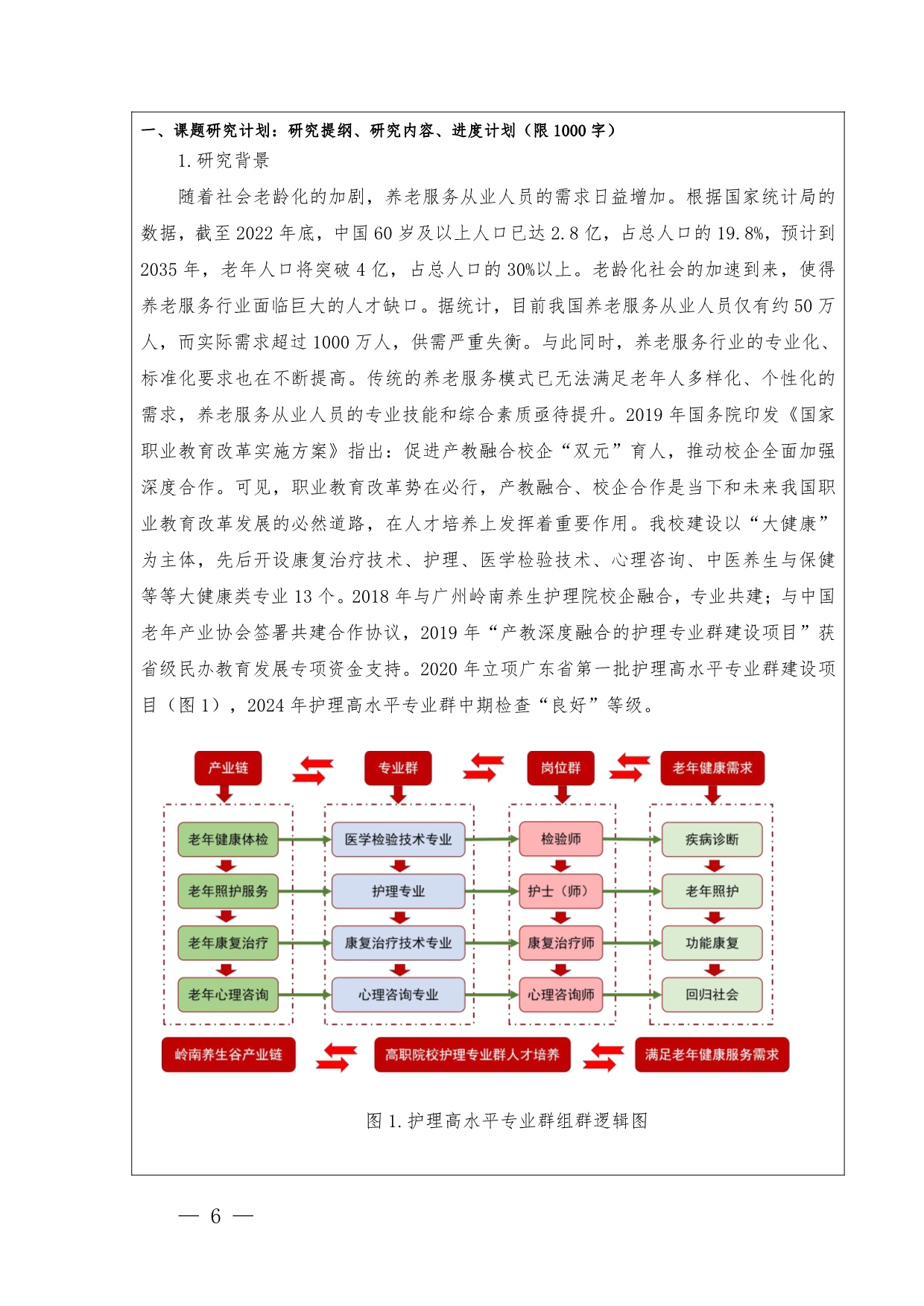 1.《护理高水平专业群建设背景下“教研+医养”校企融合实践基地建设》申报书+黄珊珊
