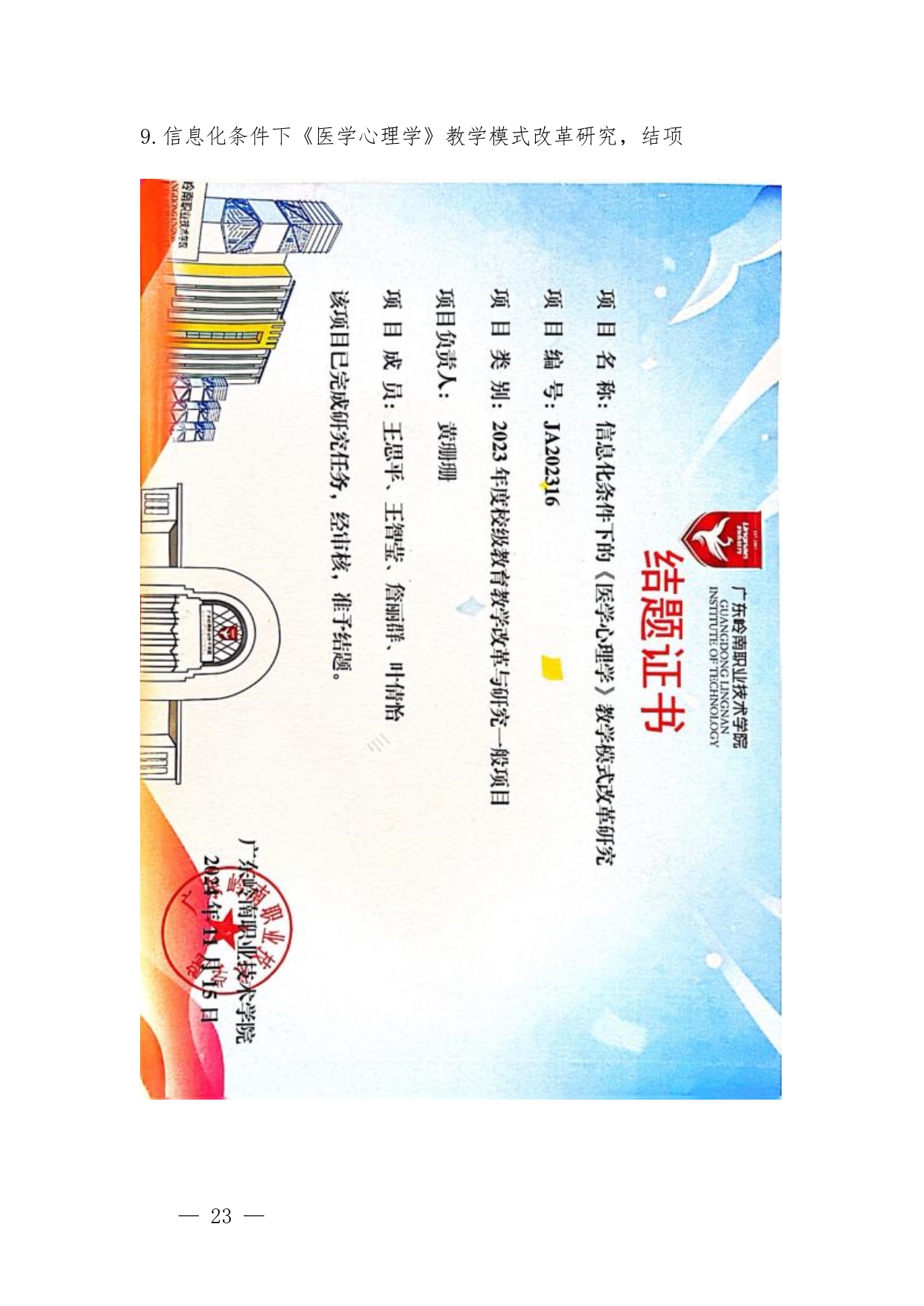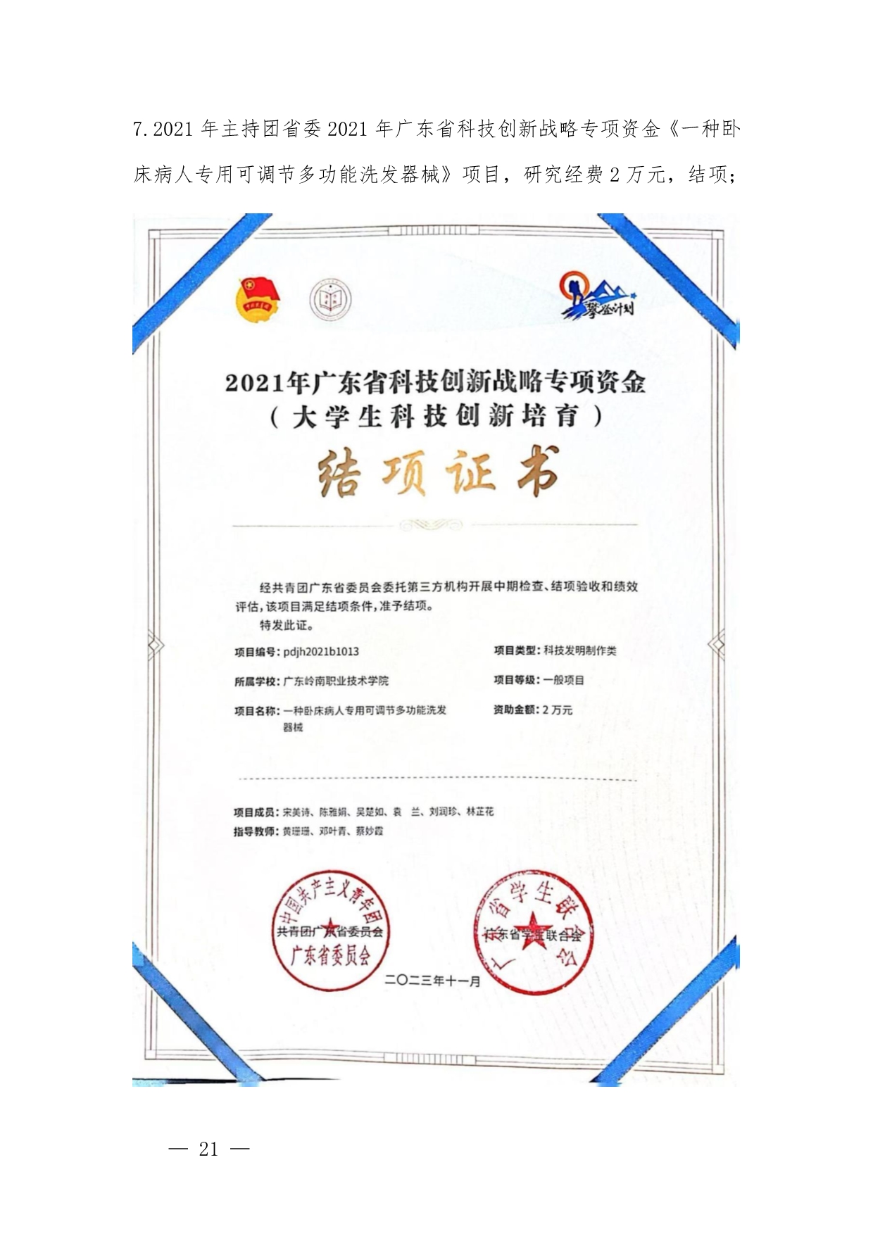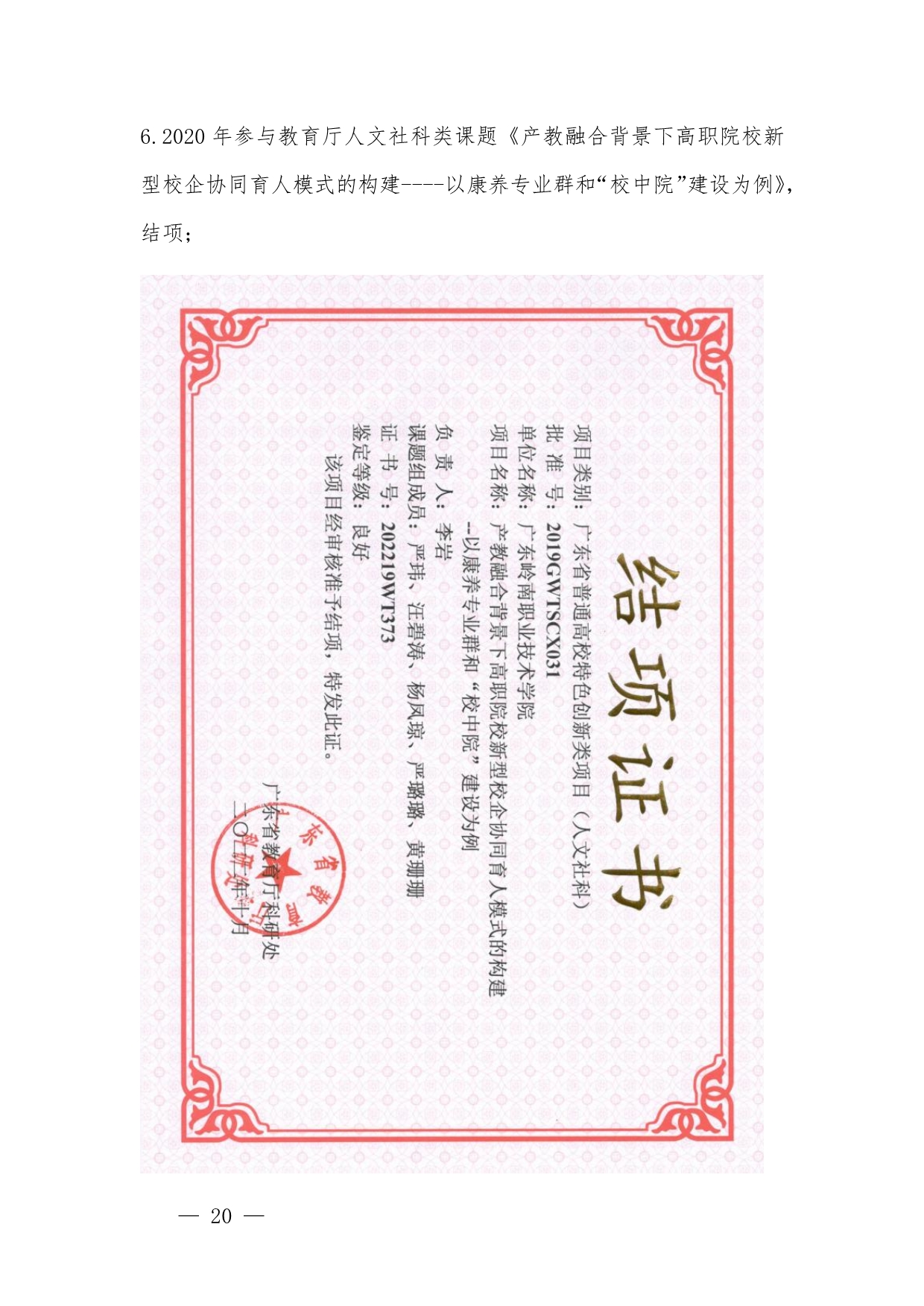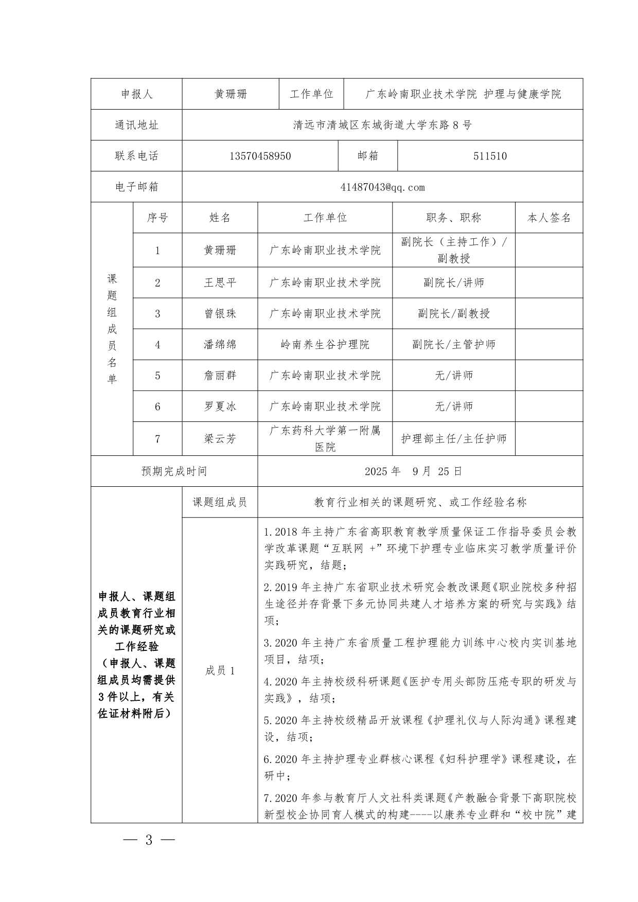 1.《护理高水平专业群建设背景下“教研+医养”校企融合实践基地建设》申报书+黄珊珊