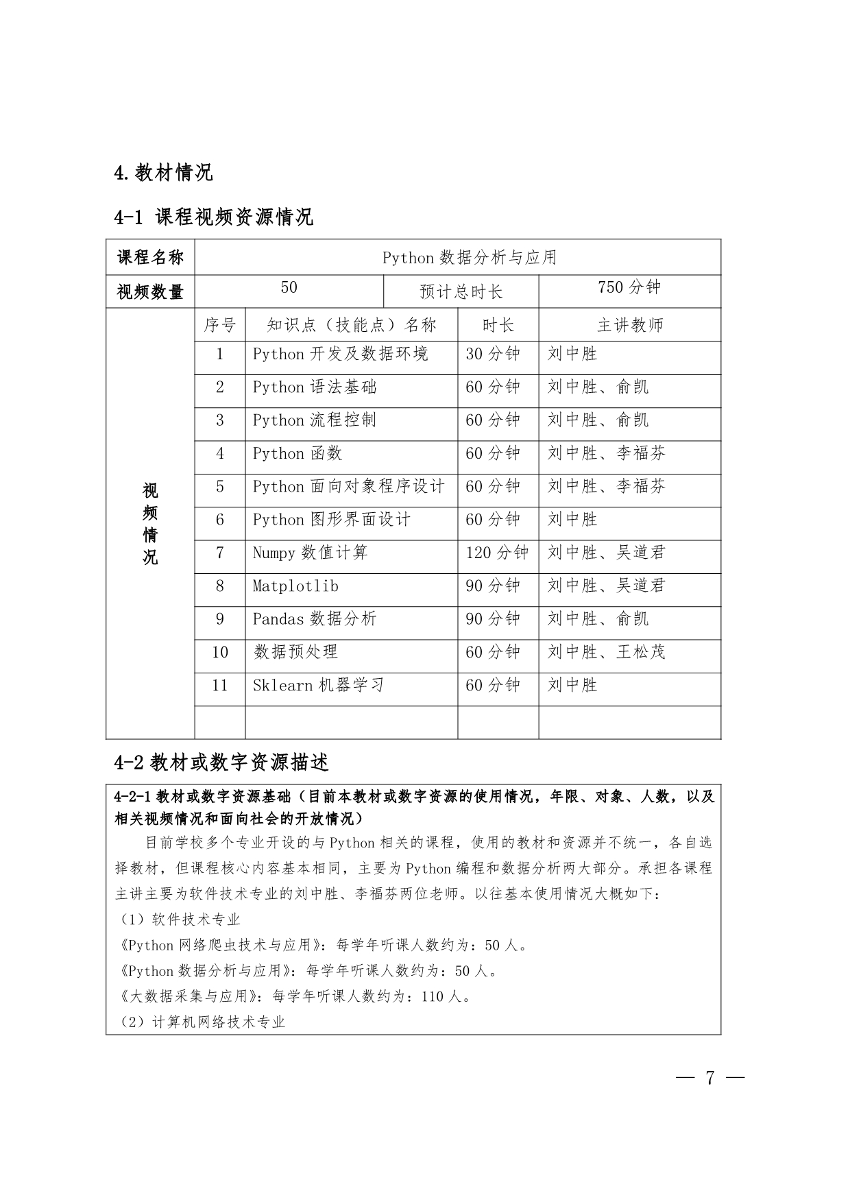1.《Python编程基础与数据分析》申报书(刘中胜)
