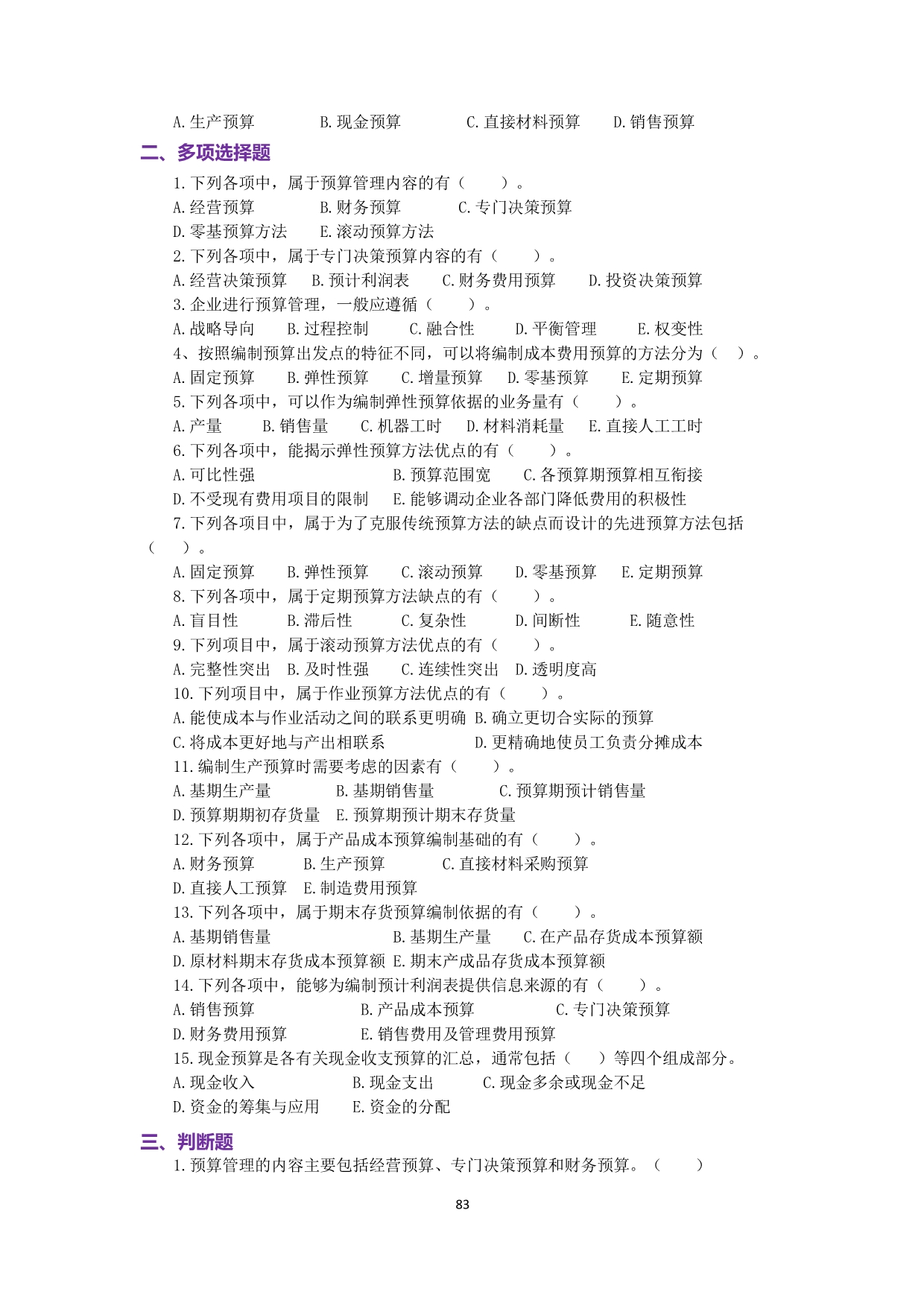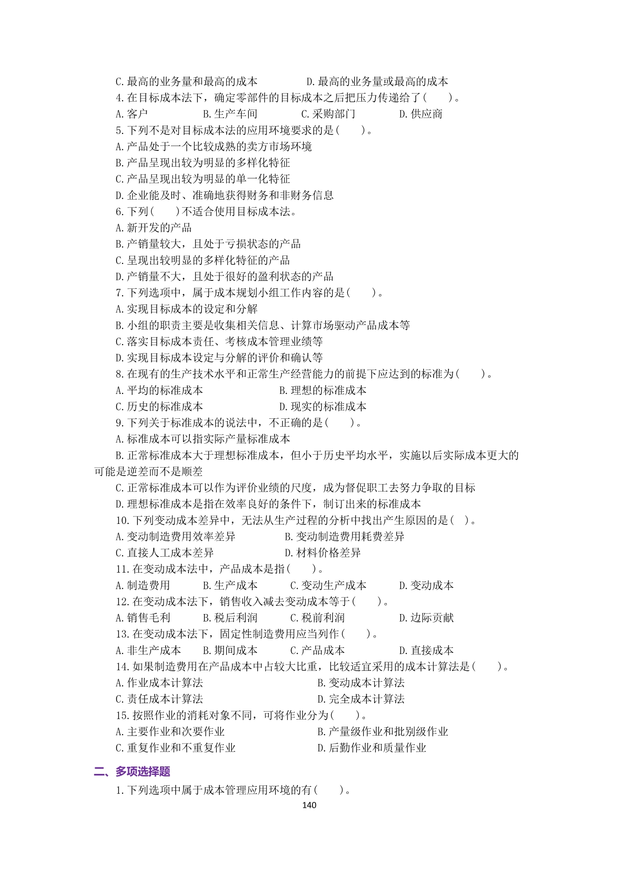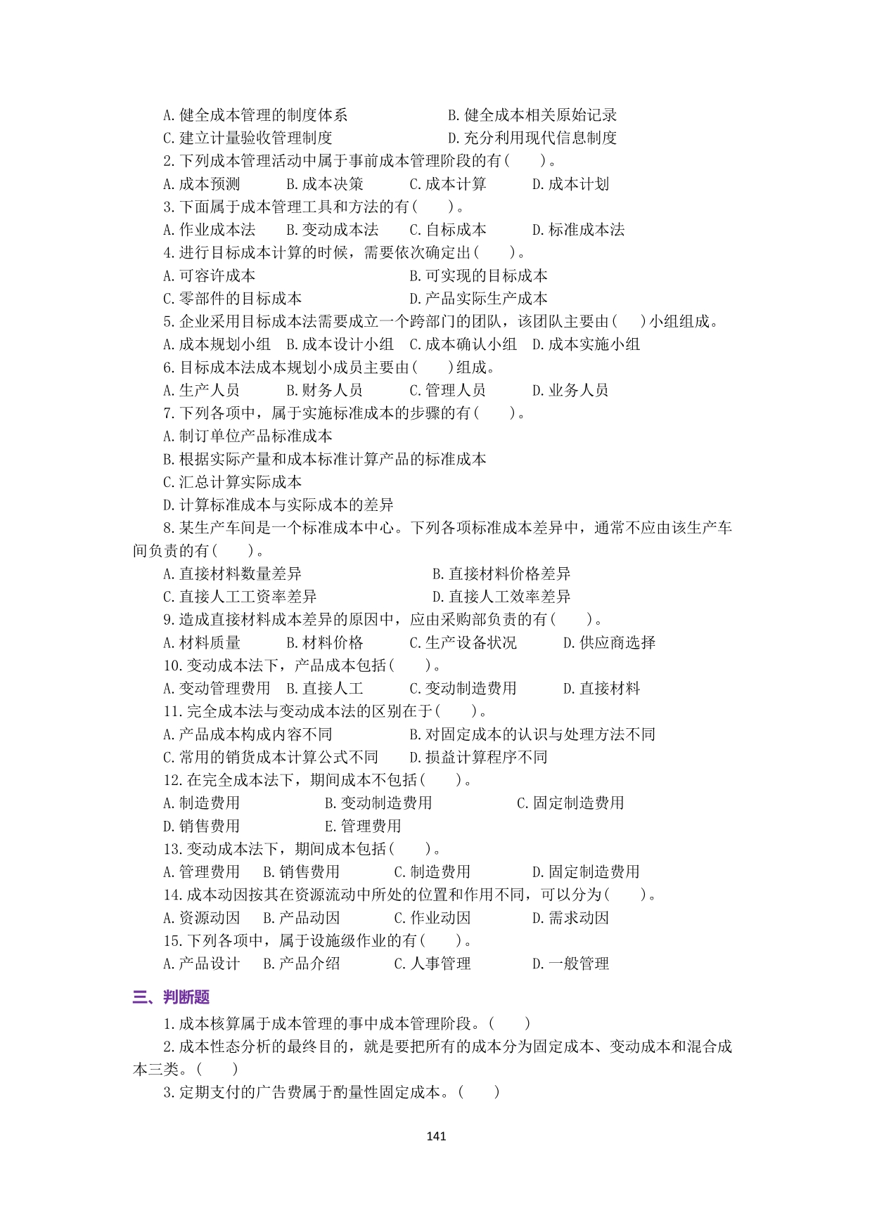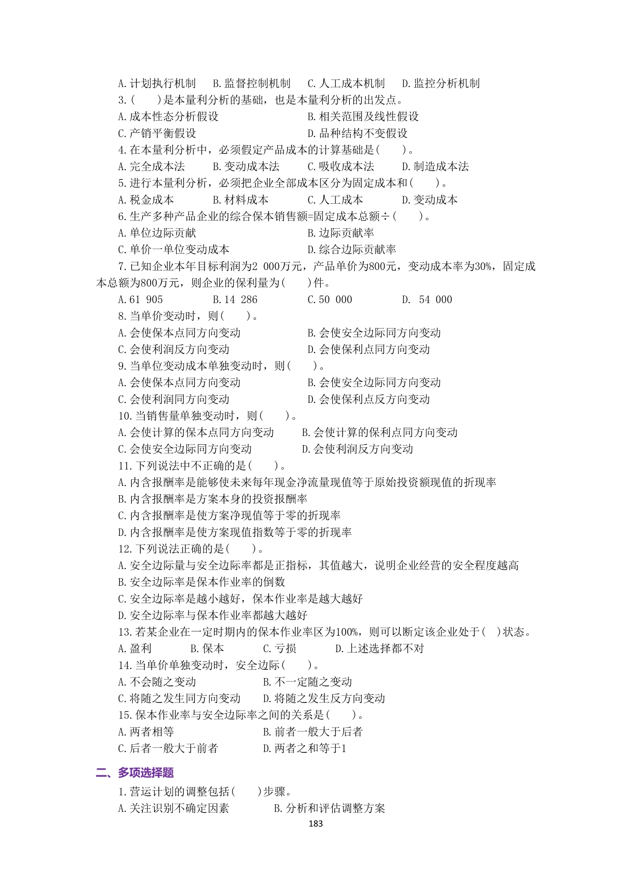 7-佐证材料3-《管理会计》配套习题(刘伟华)