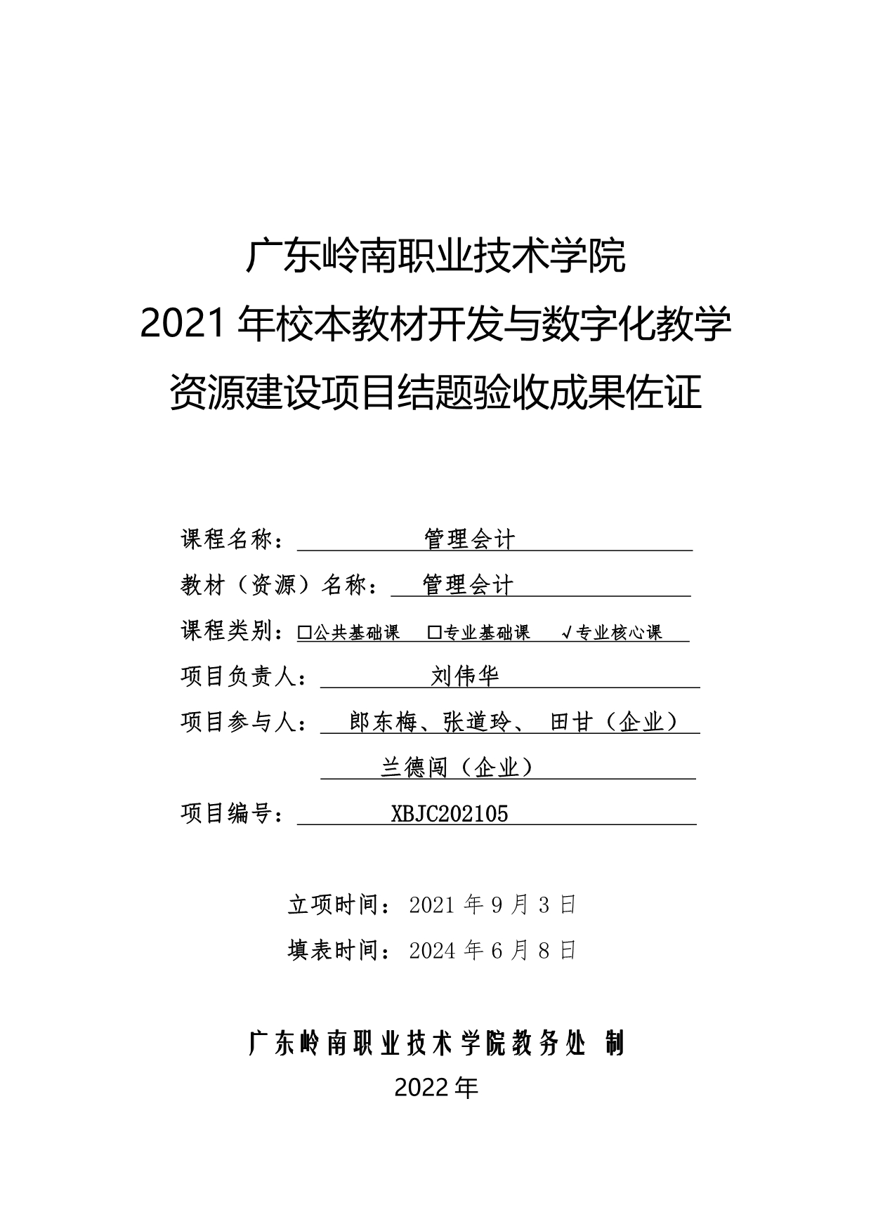 4.《管理会计》校本教材结题验收材料+刘伟华