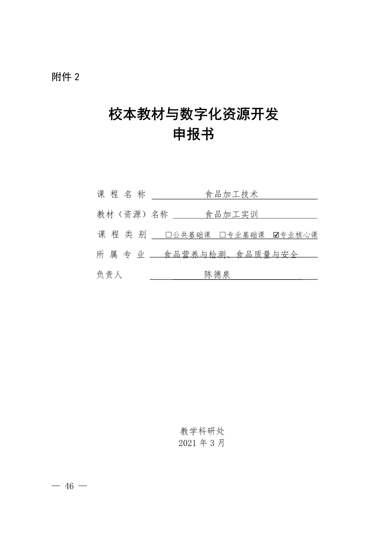1.《食品加工实训》申报书+郑爽