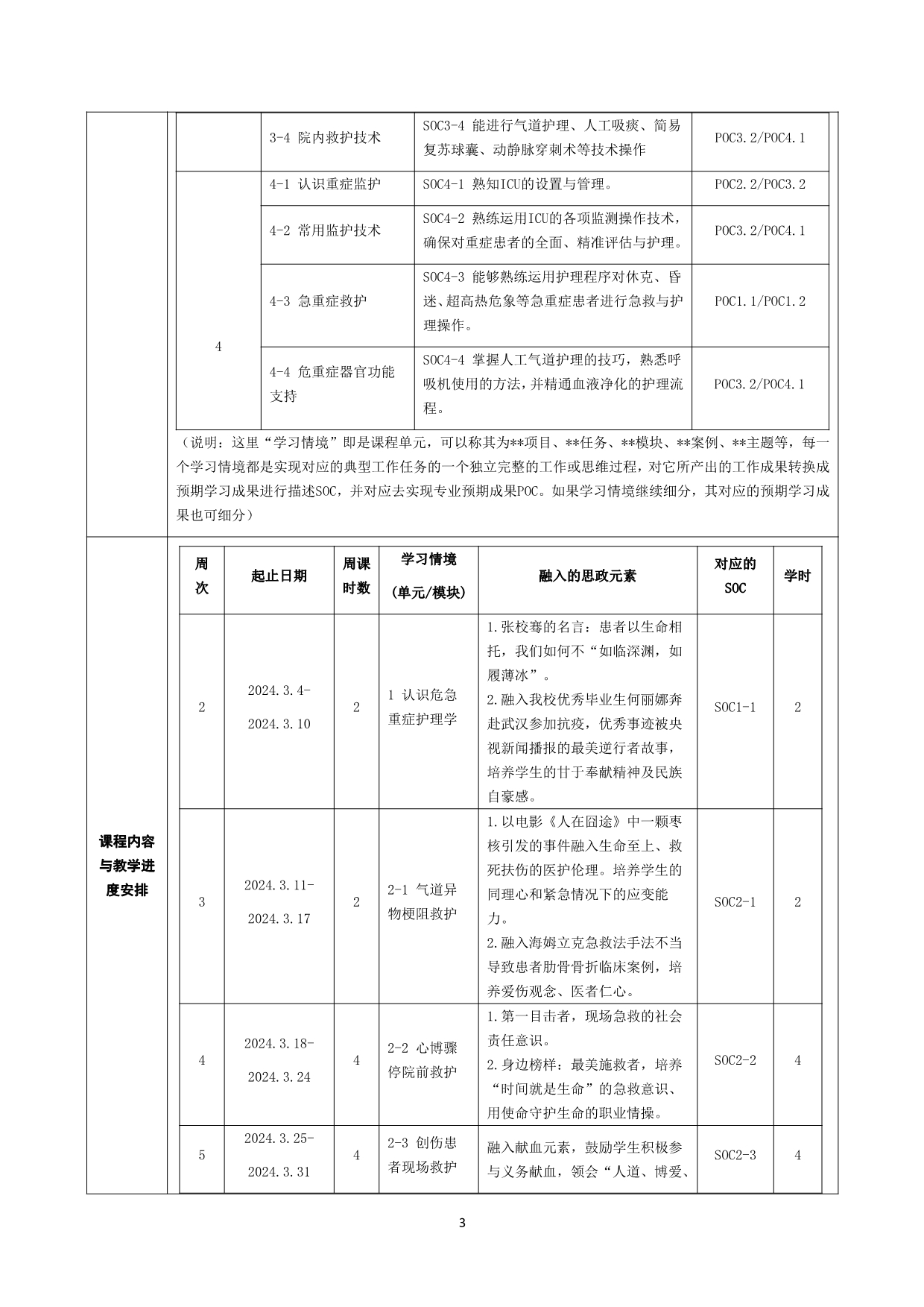 3.《危急重症护理学》学习情境(单元模块)教学设计+蔡妙霞