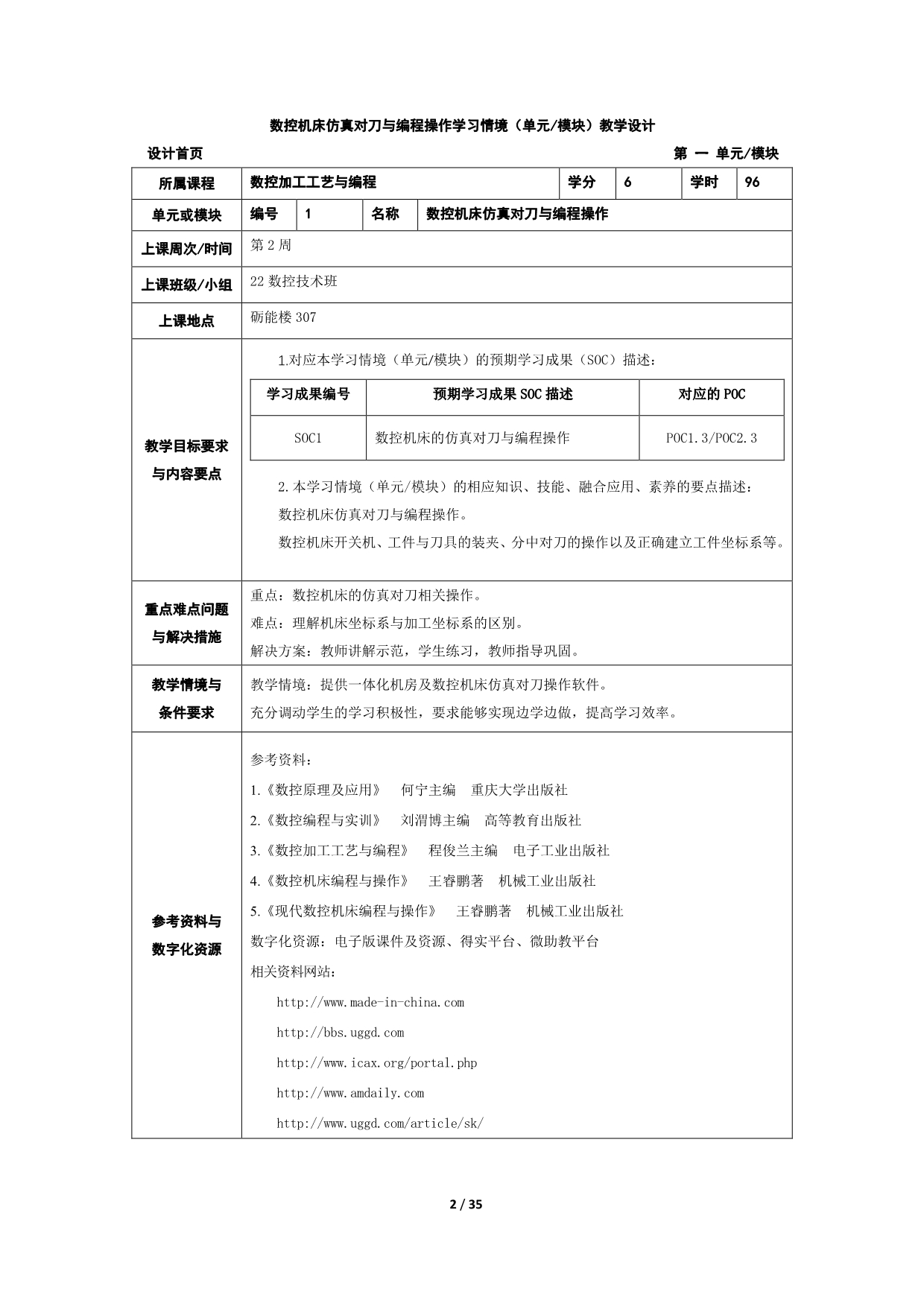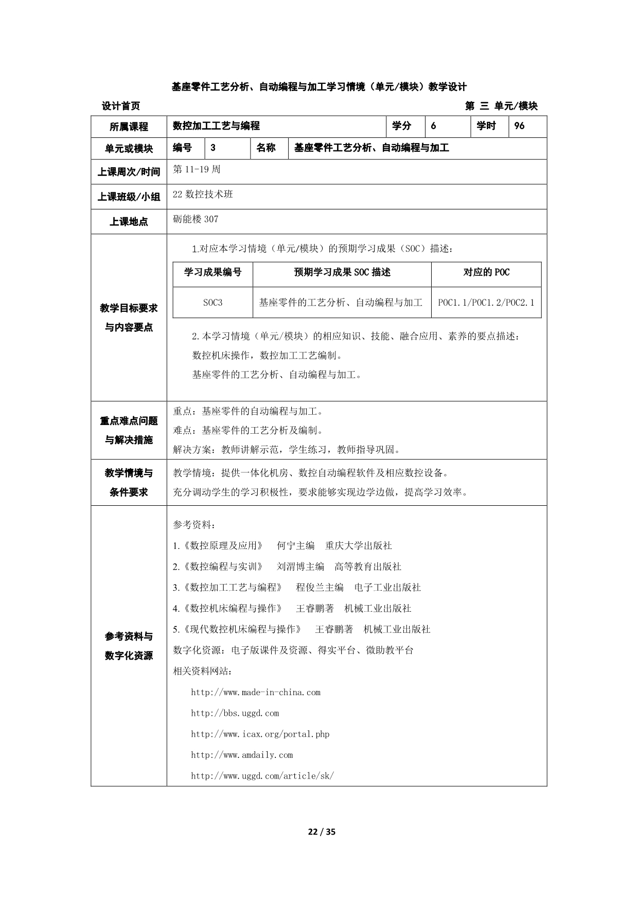 3.《数控加工工艺与编程》学习情境(单元模块)教学设计+翁宗祥