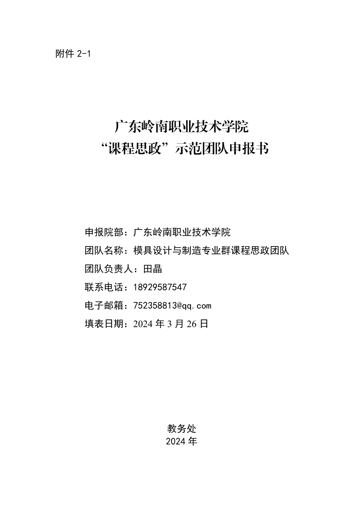 6.《模具设计与制造专业群课程思政团队》“课程思政”示范团队申报书+田晶
