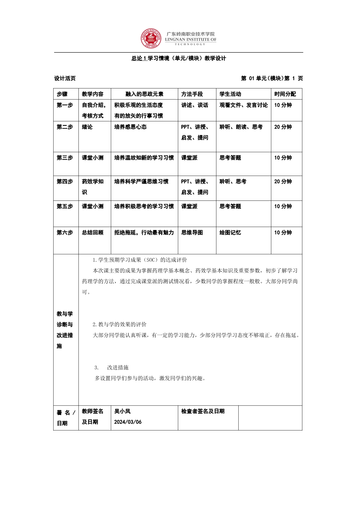6.“一链四融”培育“德技双修”人才的教学研究与实践“课程思政”教育案例推荐表+钟秋平