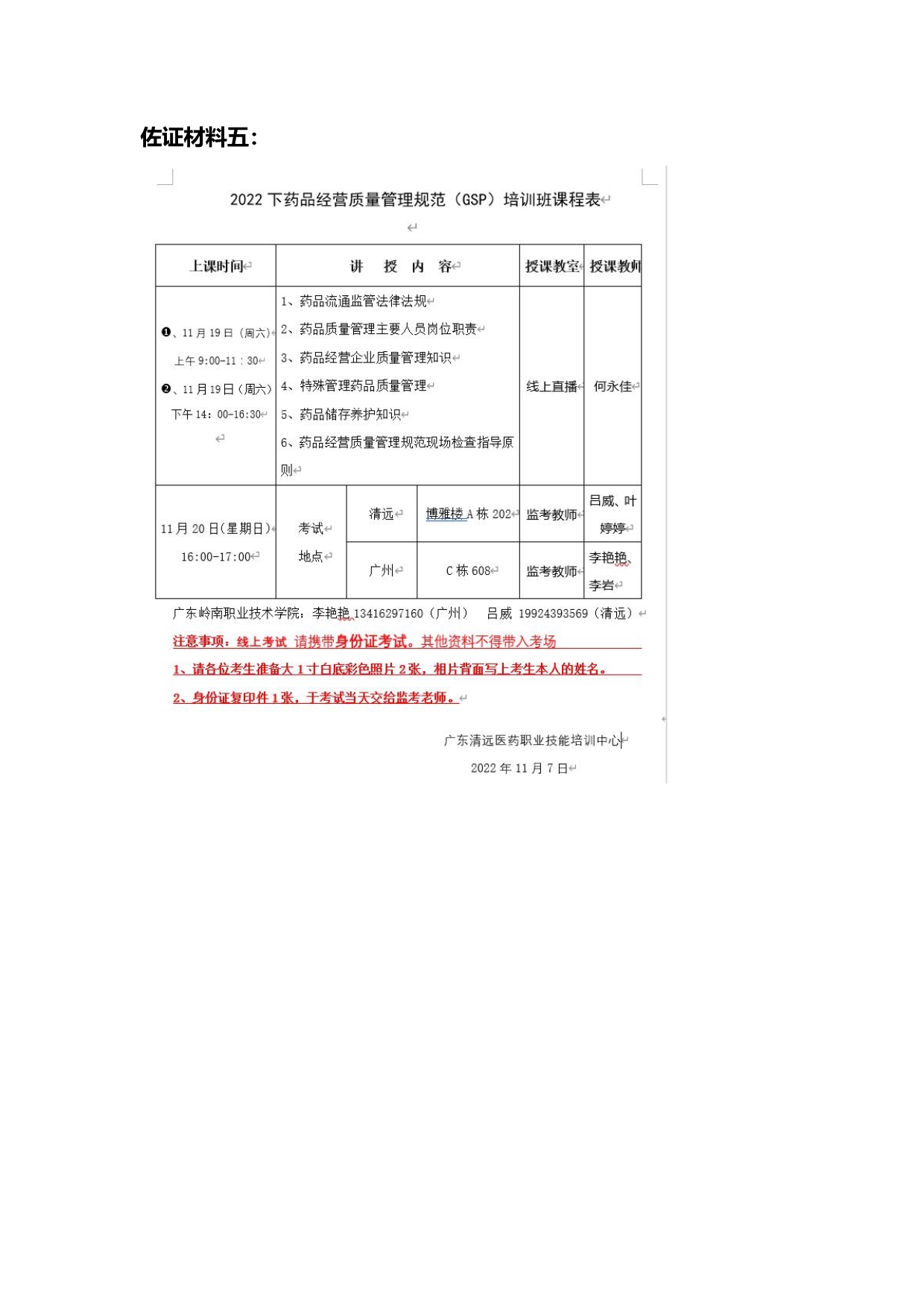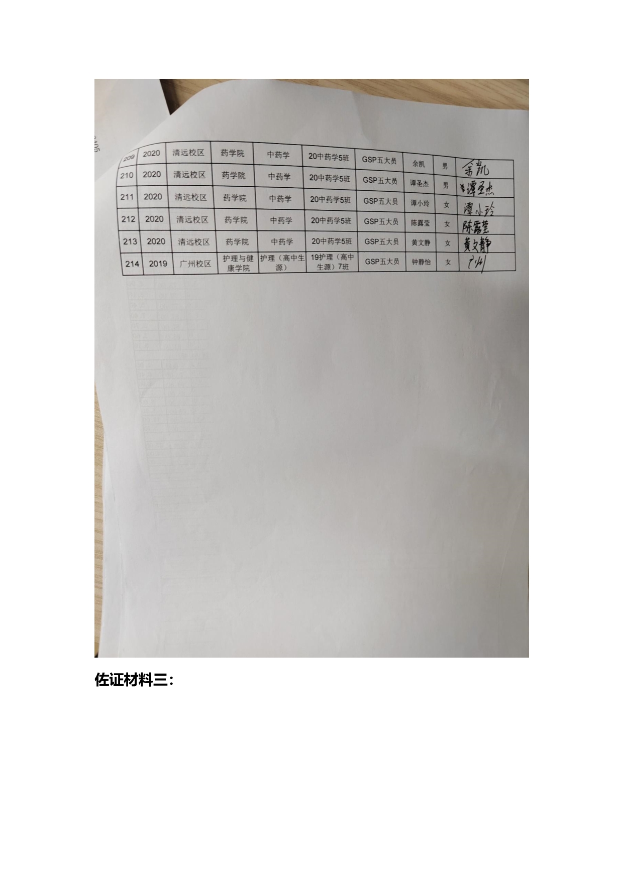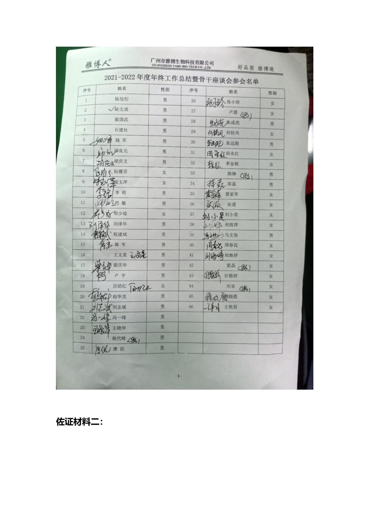 佐证材料