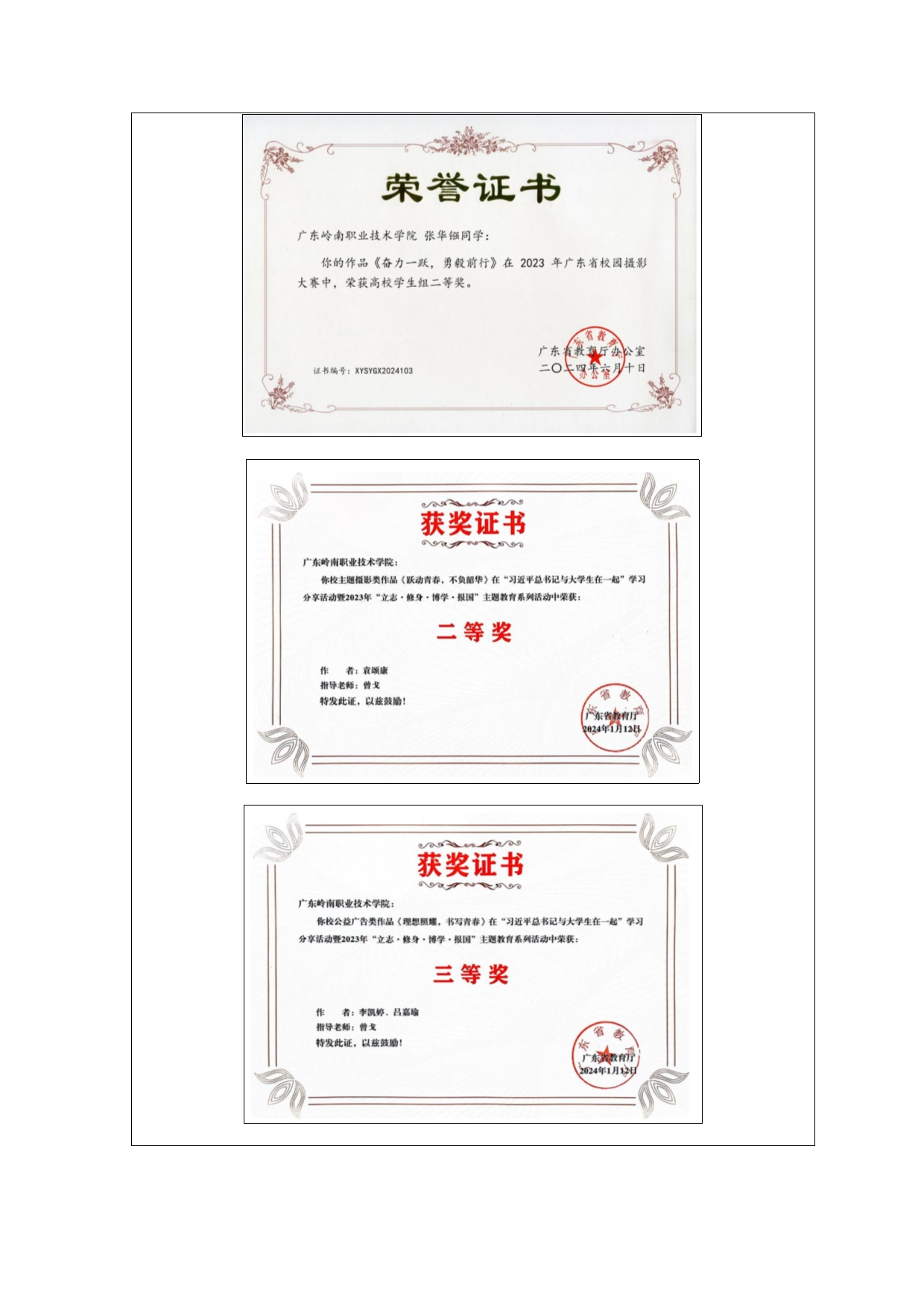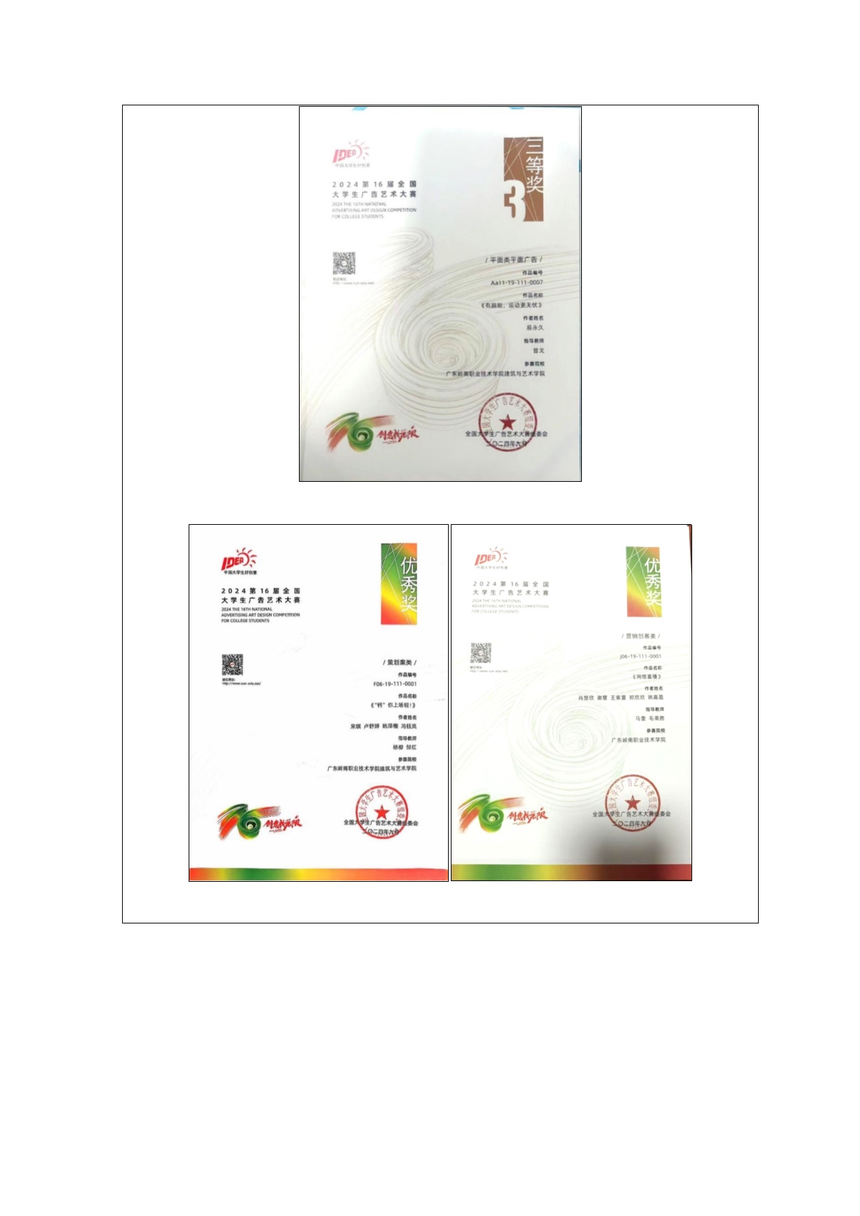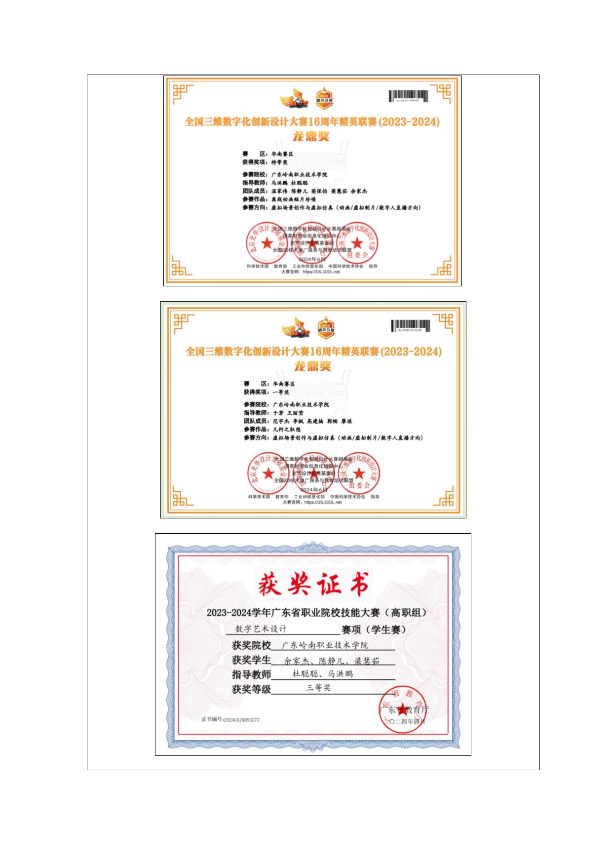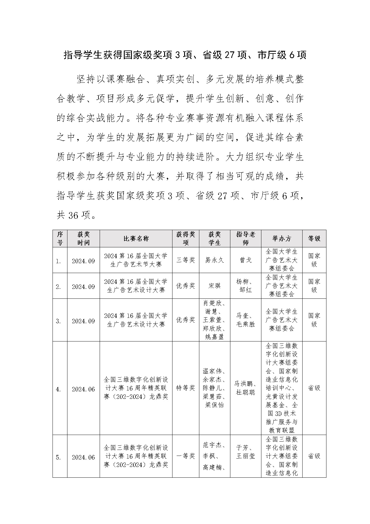 1-1-4指导学生获得国家级奖项3项、省级27项、市厅级6项