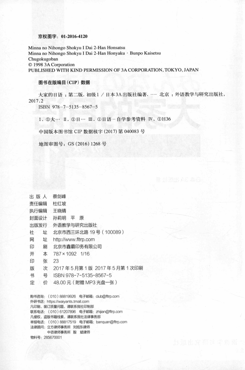 112.《大家的日语学习辅导用书初级1》日本3A出版社-国际发展中心