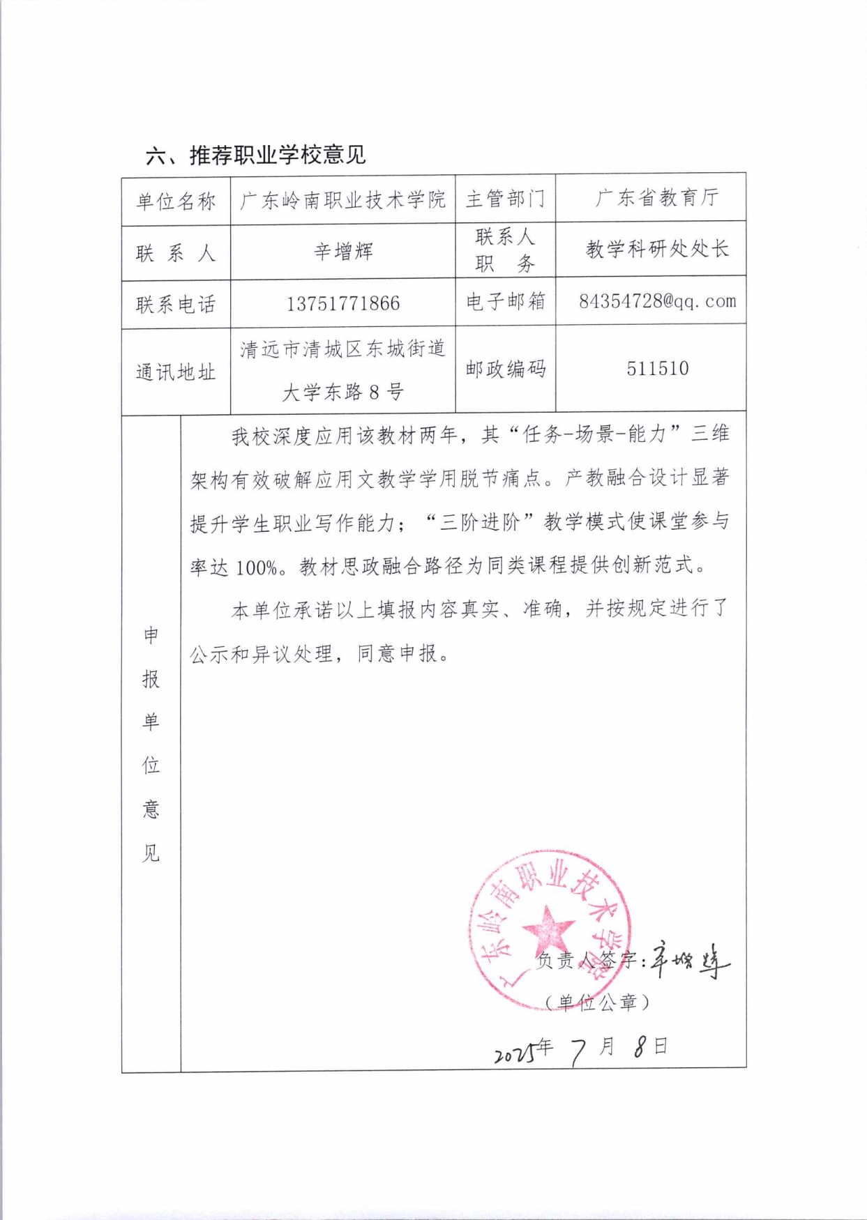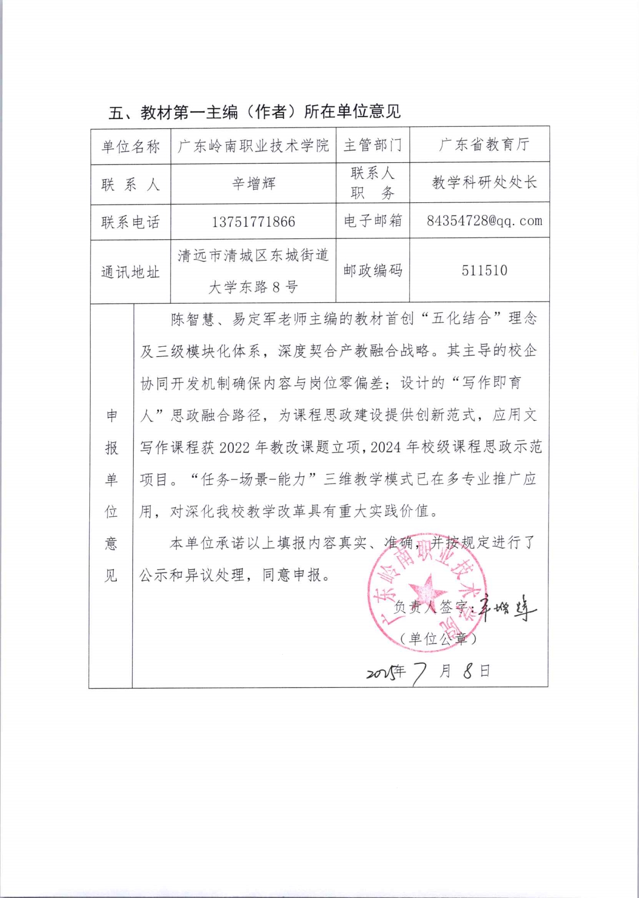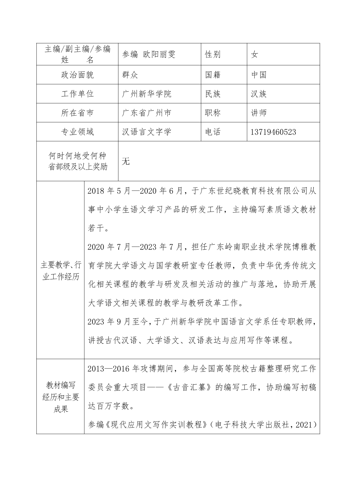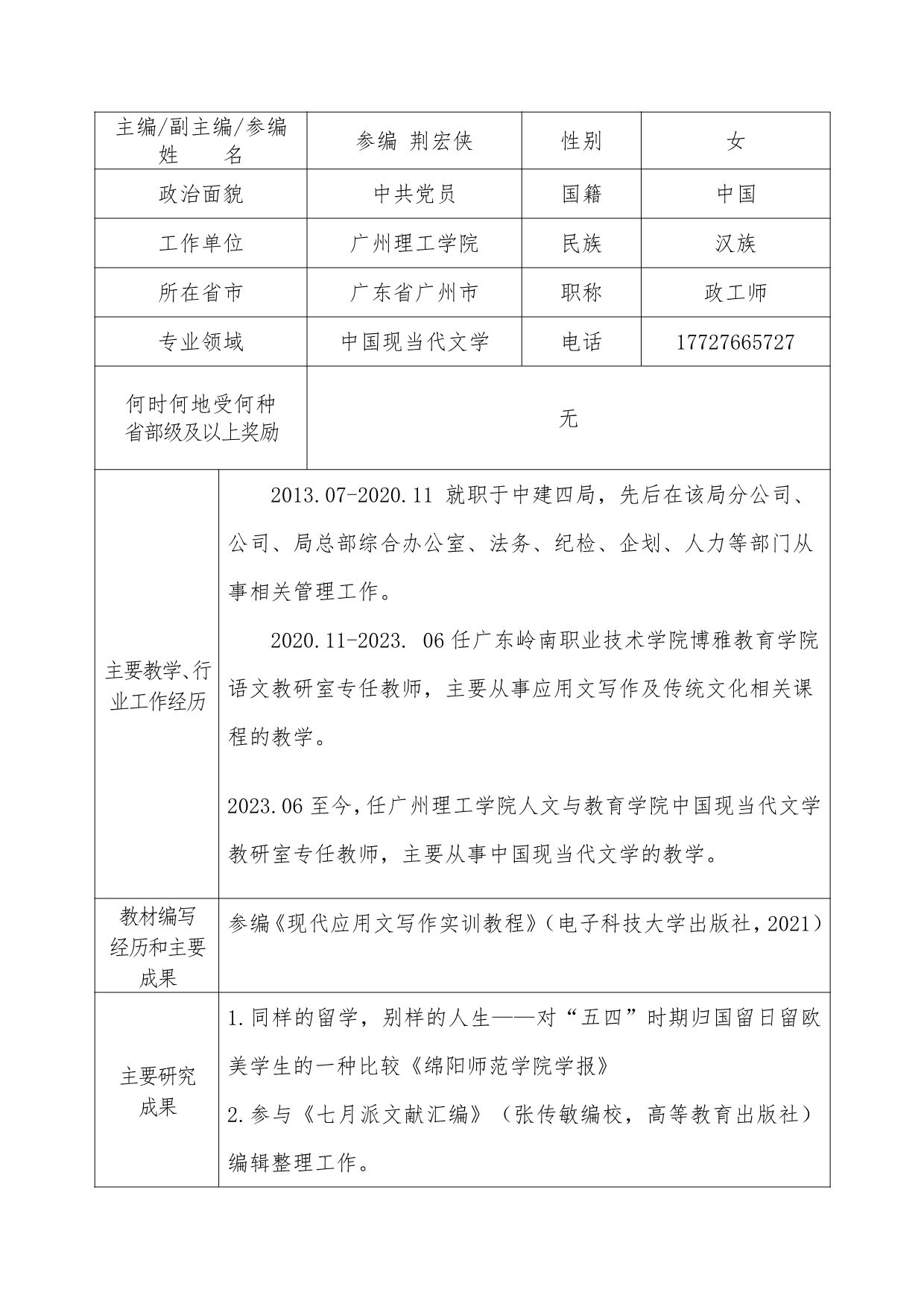 1. 附件3:第二批广东省“十四五”职业教育规划教材申报表《应用文写作模块化教程》+陈智慧