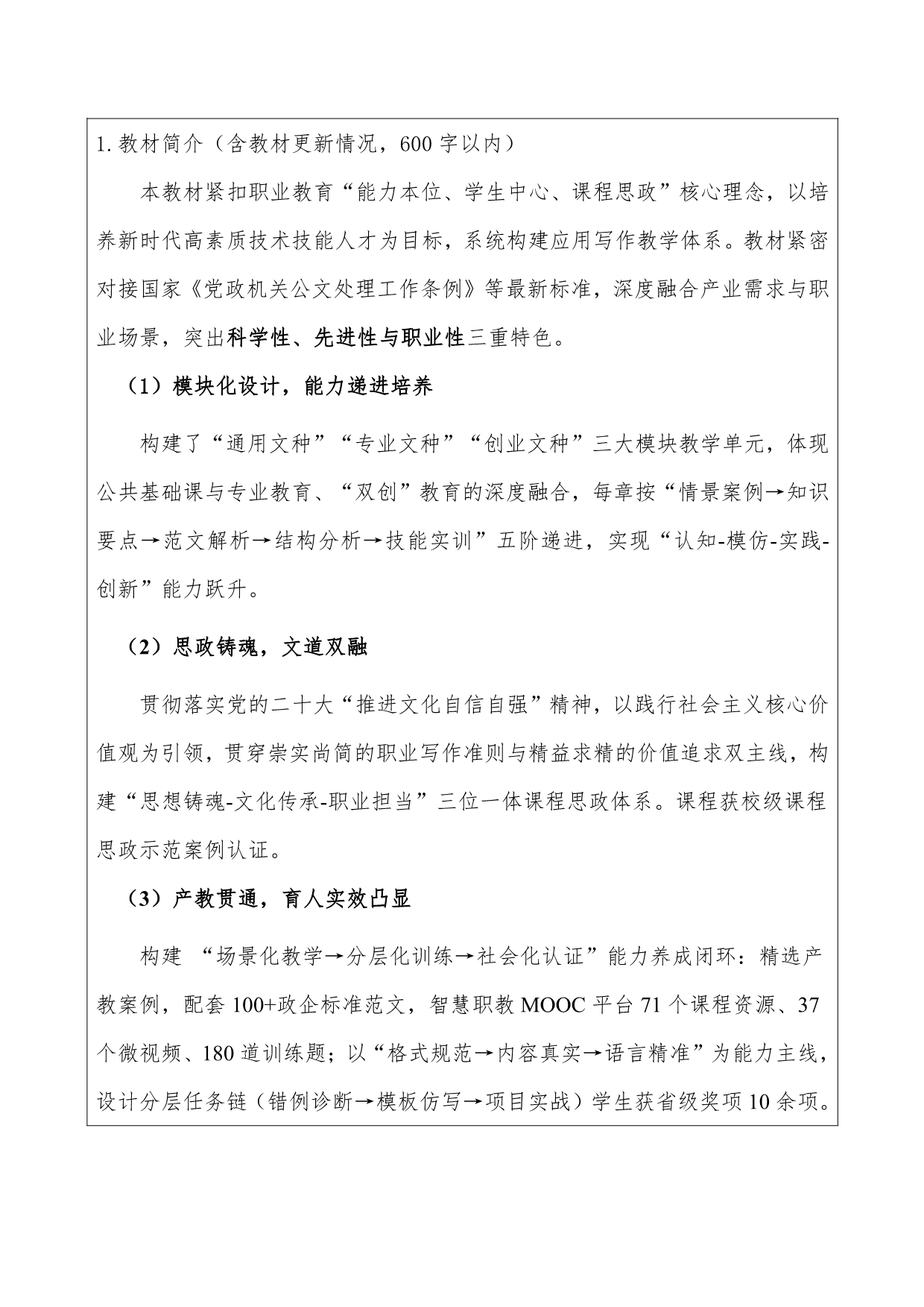 7. 《应用文写作模块化教程》第二批“十四五”职业教育规划教材申报材料+陈智慧